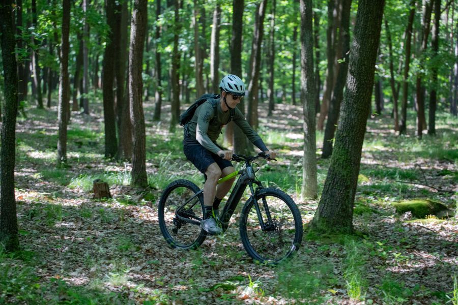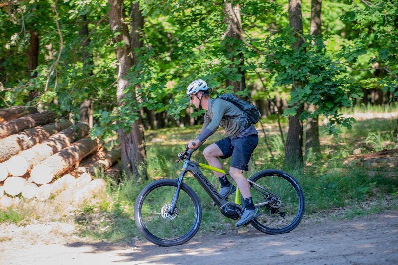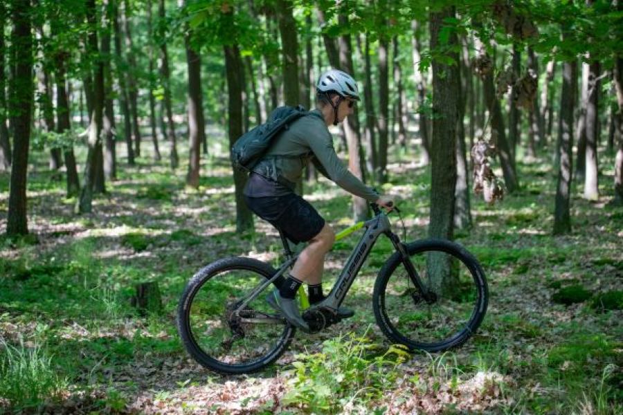 Aktivujeme stroj efektním tlačítkem na horní rámové trubce, uchopíme řídítka, příjemné a nesmekavé silikonové gripy Crussis nás lehce zahřejí v dlaních a můžeme vyrazit! Vše je na svém místě, kolo padne dobře do ruky a ochotně reaguje na změny směru i první impulzy od středového motoru. Režim ECO je příjemný pro první metry, ale život je přeci jen celkem krátký na to jezdit pouze na nejnižší stupeň dopomoci! Postupně tedy zkoušíme STANDARD a HIGH. Zatímco prvně jmenovaný má vyšší dopomoc, tak režim HIGH už zatlačí jezdce do sedla a dává naplno znát, jaký je Panasonic GX Ultimate silák! Na nejvyšší dopomoc motoru jedeme ale pouze při stoupání do prudkých kopců na kamenité stezce. Když se trail vlní nahoru a dolů a je plný zákrut, přepínáme na mód AUTO. Ten citlivě reaguje na rychlost a sílu, kterou vkládáme do šlapání, a podle toho posílá prostřednictvím řetězu na zadní kolo svoji elektrickou podporu. A ta rozhodně není malá. V podstatě je to sportovní a hodně dynamická a intenzivní jízda se špičkovým výkonem až na úrovni módu HIGH. Končí to tak, že se snažíme předjet a porazit sami sebe, stále akcelerujeme, necháváme se vystřelovat ze zatáček a užíváme si maximální podpory. Takový trénink na e-biku je nejlepší, protože po devadesáti skutečně akčních minutách, ždímání svých sil a také mačkání výkonu z motoru jsme zralí opravdu tak akorát na pivo a bazén! Dlužno dodat, že všechny komponenty fungují v maximální souhře, řazení je přesné, brzdy spolehlivé a také se dá důvěřovat plášťům, jež během našeho testu v suchých zatáčkách nacházely dostatek gripu.