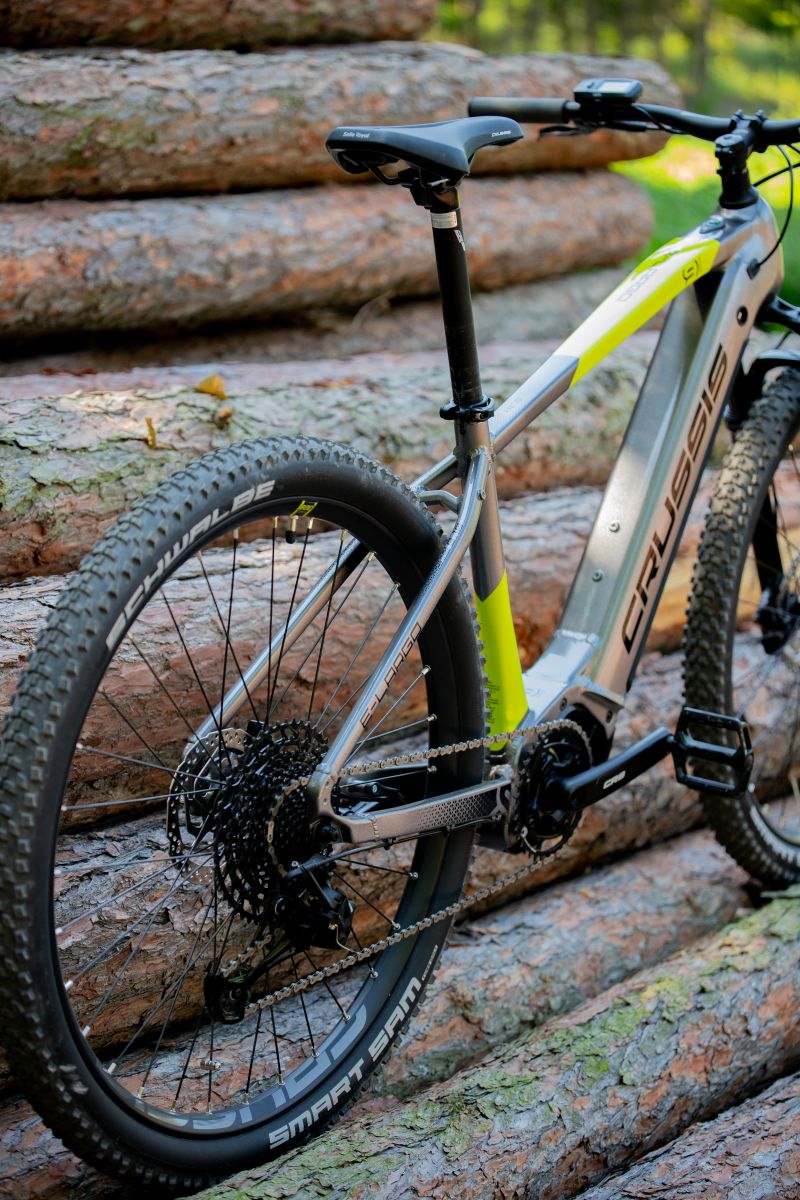 O pohodlí jezdce se vpředu stará odpružená vzduchová vidlice RockShox FS Judy Silver TK Solo Air 29“, jinak jsme odkázáni na tlumicí vlastnosti výletů a plášťů od Schwalbe. K dispozici je 12 rychlostí a perfektní zpřevodování i do nejprudších krpálů a o správnou pozici na zadní kazetě se stará přehazovačka i řazení SRAM. Protože návrháři v Crussisu měli kromě příznivé ceny na paměti i bezpečnost, vybavili stroj spolehlivými hydraulickými brzdami Shimano, které fungují za každé situace a nejeví známky únavy.
