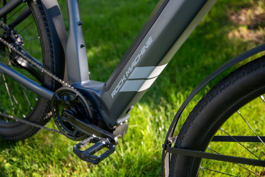 Pohodová jízda po cyklostezkách anebo přitvrzení a pár smyků na lesní cestě a zmizení pěšinkou mezi stromy – to vše si nechá líbit Rock Machine eRokk. Geometrie pohodlného e-SUV rámu má stále v DNA nějakou tu terénní skopičinu, takže na polní nebo lesní cestě i tento seriózně vyhlížející dopravní prostředek umí uhánět pořádně rychle! Jeho doménou je ale klidnější cestování anebo dlouhé rekreační vyjížďky. Zde je dobré zmínit, že doplňková externí baterie Bosch Power More 250 Wh je i zde plně kompatibilní, tudíž z maximálního dojezdu nějakých 180 km můžete rázem udělat třeba i 220 kilometrů, pokud si tento akumulátor opatříte. Je otázka, jestli ale takovou porci kilometrů chcete ujet opravdu za jediný den, anebo si na to necháte týden či deset dnů…