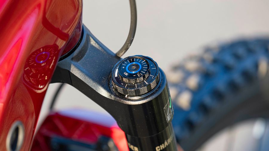 Odpružená vidlice RockShox ZEB Ultimate se 160 mm zdvihu představuje absolutní špičku v segmentu enduro vidlic. Nový tlumič Charger 3.1 RC2 umožňuje precizní nastavení pro optimální komfort, kontrolu a rychlost. Technologie ButterCups redukuje vibrace a únavu rukou, zatímco systém DebonAir+ zajišťuje hladkou jízdu přes nerovnosti a zvýšenou podporu během šlapání. Konstrukce s 35mm průměrem nohou vidlice poskytuje maximální tuhost při různých gravitačních a torzních silách a současně přesnost řízení v každé zákrutě. Vidlice je zkrátka stvořena pro nejnáročnější terén a při rychlé jízdě technickými pasážemi poskytuje naprostou jistotu. Zadní tlumič RockShox Deluxe Select+ RT je výkonný a odolný tlumič navržený pro trail a enduro jezdce, kteří vyžadují spolehlivé odpružení i v nejnáročnějším terénu. Optimalizované tlumení vyhlazuje tvrdé nárazy, zatímco systém RT umožňuje nastavení zpětného rázu a efektivní šlapání pomocí páčky. Vzduchová komora DebonAir+ nabízí možnost jemného doladění pro vysoce citlivý a kontrolovaný pocit z jízdy. Celoodpružený systém to zvládá hrát na obě strany – nabízí ideální rovnováhu mezi komfortem a pohodovým pohupováním na dlouhých štrekách a chirurgicky přesnou kontrolou stroje při agresivní jízdě. Geometrie rámu s položeným hlavovým úhlem zajišťuje stabilitu při vysokých rychlostech, navíc ve spojení s propracovanou geometrií a nízko posazeným těžištěm působí skutečně jistě a neoblomně.