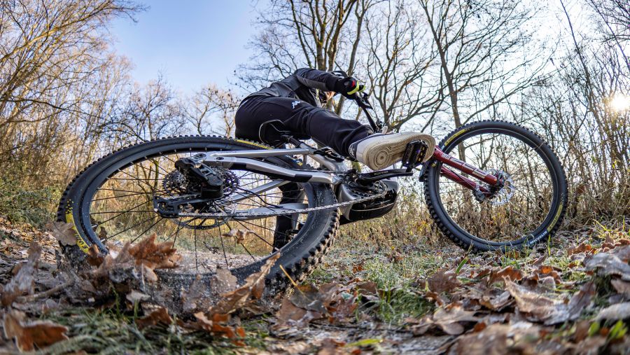 Čtyřpístkové hydraulické brzdy SRAM Maven Bronze jsou navržené přímo pro náročné enduro a e-MTB použití. Technologie SwingLink garantuje progresivní a citlivý chod páky s výbornou modulací. Tuhý čtyřšroubový třmen umožňuje efektivní odvod tepla a konzistentní výkon i při dlouhých sjezdech. Kotouče o průměru 200 mm vpředu i vzadu poskytují obrovskou brzdnou sílu a neuvadající stabilitu i při extrémním zatížení, kdy opravdu visíme na brzdách. Páka s ložiskovým čepem nabízí snadné individuální nastavení a ergonomický přístup. Během našeho testování na výletě v přírodě i krátkém dovádění v bikeparku brzdy prokázaly výjimečnou sílu a spolehlivost, o náznaku vadnutí nemůže být ani řeč, na to je potřeba delší tortura v horách, na kterou jsme neměli prostor. Brzdy jsou tiché a současně nekompromisní, používají minerální olej pro snadnou údržbu a vysokou účinnost, zkrátka ideál pro agresivnější pojetí e-bikingu na drsných trailech.