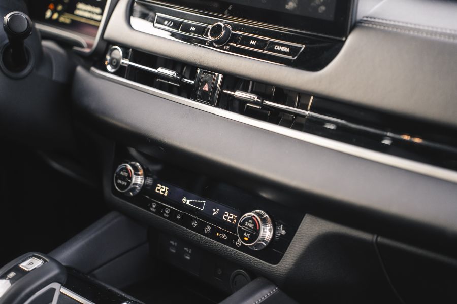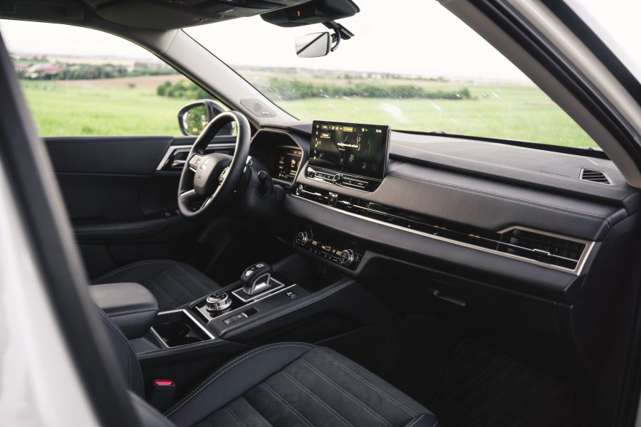 Uvnitř jsme jsme nalezli pečlivě a hodnotně zpracovaný interiér a opravdový luxus s kombinací černých a Alcantarových ploch. Na sedadle řidiče jsme se velmi rychle zorientovali a zjistili, že vše je řešeno ergonomicky i logicky, ale částečně také lehce specificky. Nedivíme se, protože originální a svébytné japonské automobilky to tak dělají. S ničím jsme neměli problém a nechali jsme se hýčkat. Ovládání klimatizace bylo na samostatném spodním displeji. Infotainment se ovládá na hlavním displeji, zatímco další nastavení a veškeré asistenční prvky řešíme na přístrojovém štítu přes tlačítka na volantu. Vpředu je posezení královské a o nic hůře na tom v této terénní limuzíně nejsou ani pasažéři vzadu. Špičkový soundsystém Yamaha Premium s osmi reproduktory svědčí o tom, že výrobce si dal skutečně záležet a nijak na výbavě nešetřil.