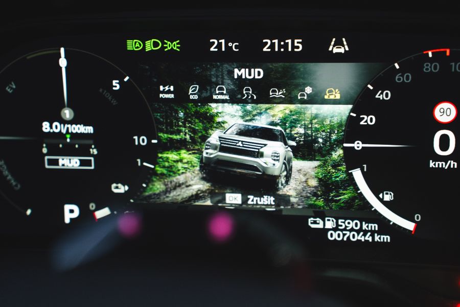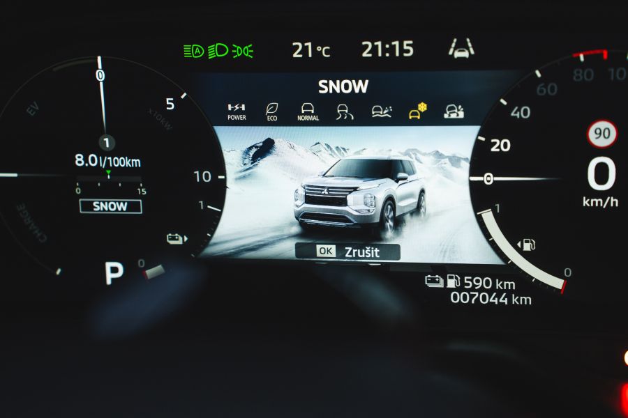 Vůz je poháněn spalovacím motorem bez přeplňování nebo přímého vstřiku o objemu 2,4 litru a výkonu 100 kW, dále má jeden zadní elektromotor o výkonu 100 kW a další elektromotor ještě na přídi. Ten má výkon 85 kW, je napájen generátorem a prostřednictvím převodovky se spojuje se spalovací motorovou jednotkou. Výsledných 225 kW a 306 koní a pohon na všechna čtyři kola dělají z tohoto vozu mimořádně schopné a živé přibližovadlo, na stovku dokáže zrychlit za necelých osm vteřin. Lesní úvozy nebo hodně příkré polní cesty jsou pro něj lahůdkou a jediným limitem mohou být překážky vyžadující větší nájezdový úhel anebo nějaké brody a hlubší bahno. My jsme se drželi spíše těch rozumně sjízdných polních nebo lesních cest, které končily nějakým malebným návrším anebo skrytým paloučkem, kde bylo možné rozložit střešní stan Yakima. Pohon všech čtyř kol 4WD S-AWC funguje výtečně a dostali jsme se i na hůře přístupná místa. Není to ale klasická čtyřkolka s kloubovým hřídelem, nýbrž má koncepci samostatných motorů a je dobré, že silnější elektrický pohon je na zadní nápravě. Stoupací schopnosti jsou skvělé a trakce je pod kontrolou. Navzdory rozměrům a také velké baterii s kapacitou 22,7 kWh je hmotnost vozu těsně pod dvoutunovou hranicí, což je na tak mohutný vůz dobré. Nabíjení je možné DC výkonem až 40 kW u konektoru CHAdeMO, dále AC nabíjením přes konektor Mennekes anebo základní možností přes palubní nabíječku s maximálním výkonem 3,3 kW. Vůz je hospodárný a snaží se jezdit na elektřinu, jak jen to jde. Tok energie a proporce mezi využitou energií ze spalovacího motoru a elektromotorů zobrazuje na předním displeji. Pádly pod volantem ovládáme šestistupňovou rekuperaci, což je škála, se kterou lze jet velice ekonomicky a vodit auto od plachtění až po nejsilnější rekuperační zpomalování, nechybí také funkce jednopedálového řízení. Celková spotřeba se odvíjí od stylu jízdy a od toho, jak často jsme schopni dobíjet. Čistě na elektřinu se dá ujet přibližně 80 kilometrů, pomalým posunováním po městě klidně i stovka, ale je to odvislé od více faktorů. My jsme s sebou vozili ještě na střeše umístěný složený stan, což je další zátěž, a především zhoršení aerodynamického odporu. Přesto jsme se pohybovali na průměru kolem šesti litrů benzínu na 100 km doplněných pravidelným nabíjením z domácího wallboxu anebo příležitostně DC nabíjením přes konektor CHAdeMO.