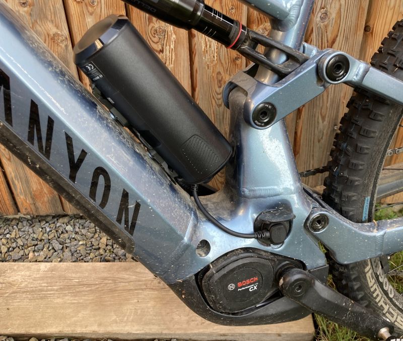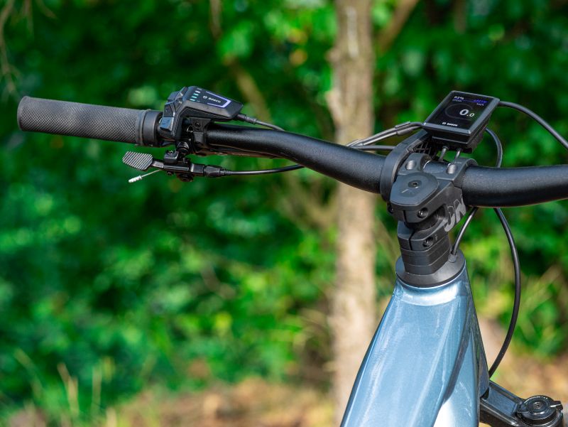 Jak jsme již zmínili, tak Canyon Neuron:ON Al 9 je vybaven elektrickým systémem Bosch CX v poslední 5. generaci. To znamená, že je k dispozici Smart System pro maximální přístup k elektrokolu, rozšířené nastavení a další informace v aplikaci Bosch eBike Flow. Tohoto modelu se pochopitelně týká také důležitý update a zvýšení výkonu od letošního července, takže lze snadno nastavit vyšší krouťák z 85 na 100 Nm a maximální přísun podpory z původních 600 až na 750 wattů. Pro zobrazení okamžitých informací máme k dispozici na řídítkách na držáku před představcem středový displej Bosch Kiox 300, jenž umožňuje sledování naší jízdy, výkonu, rychlosti a dalších veličin, navigaci, synchronizaci s aplikací eBike Flow a další funkce. Automaticky je zde modul Bosch ConnectModule pro sledování GPS a ochranu proti krádeži, jenž se dá aktivovat a po prvním roce zdarma potom platit stabilní předplatné této služby. Motor zapínáme a režimy přepínáme řídítkovým LED Remote ovladačem u levého gripu a páčky přední brzdy. Ovladač je sám o sobě subtilní, zatímco displej předsazený před řídítky občas může přijít do styku s větví či klackem anebo se poškodit při pádu.