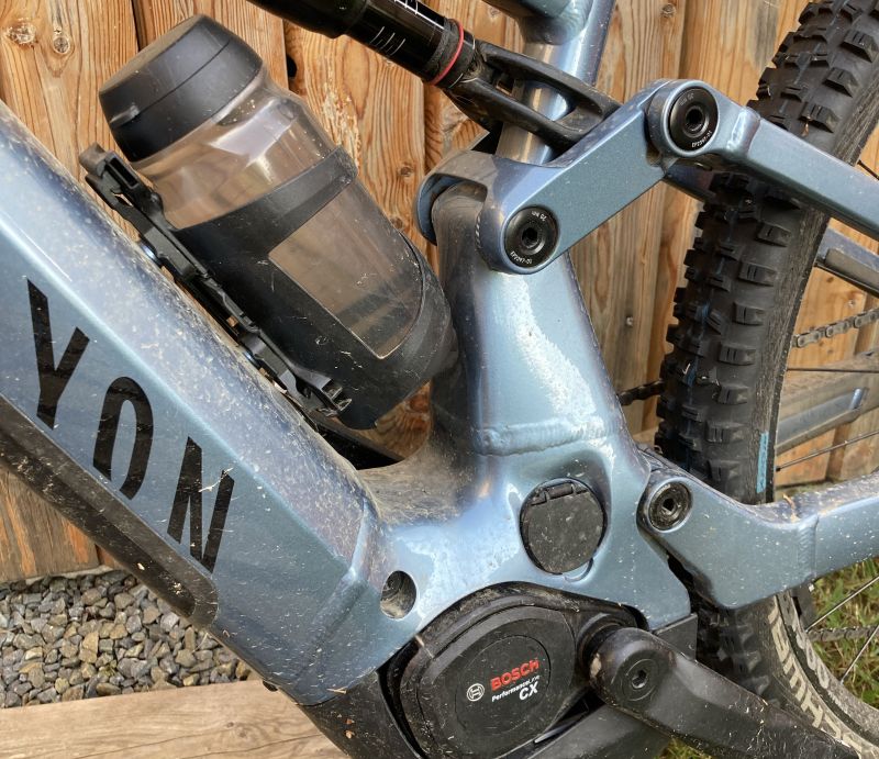 Hlavní rámový trojúhelník pojme tlumič i košík na lahev či volitelně umístitelný doplňkový akumulátor Bosch PowerMore pro delší dojezd. Vše se přesně vměstná do rámového trojúhelníku i u nejmenší velikosti rámu. Spodní trubka má masivnější profil kvůli integraci hlavního akumulátoru 800 Wh, v oblasti středu je také přiznáno více materiálu pro pevné uchycení motoru a tuhost spojení. Ještě doplňme, že vstupní model této řady, Neuron:ON Al 7 s cenou těsně pod 100 000 Kč, má pochopitelně stejný rám, ovšem pouze základní verzi akumulátoru s kapacitou 600 Wh (s vymezovacím dílem zaklapne do stejného prostoru v rámové konstrukci). U testované verze Al 9, o necelých 45 tisíc dražší, už dostáváme lepší výbavu a velký akumulátor 800 Wh v základu. Příplatkový doplňkový akumulátor Bosch PowerMore 250 pro prodloužení dojezdu je volitelně dostupný pro obě verze, a to za stejný příplatek 12 299 Kč. My jsme tento prodlužovač dojezdu dostali od výrobce rovnou jako součást výbavy elektrokola a už poněkolikáté jsme se přesvědčili, že je to praktická a užitečná věc, do které se vyplatí investovat. Pokaždé jsme se mohli rozhodnout, zda před náročným výletem vycvakneme z plastového držáku na rámu lehký košík s lahví a místo něho stejně jednoduše připneme doplňkovou baterii a připojíme do systému přes nabíjecí zdířku. Je to operace na pár desítek vteřin. Jen si potom nesmíme zapomenout vzít pití do vaku na zádech.