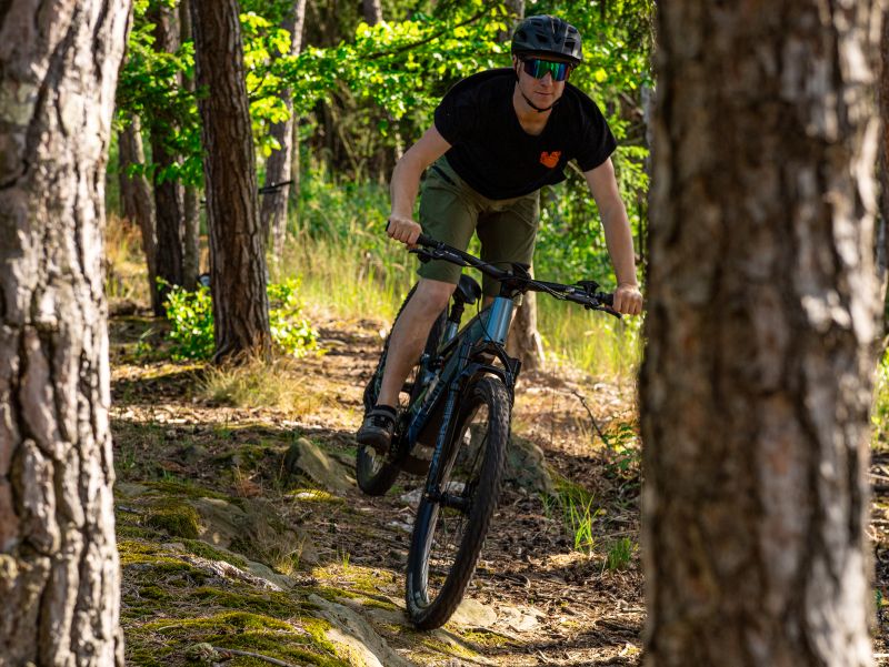 Vyhoupneme se do sedla a už cítíme, že se nám to bude líbit! Vidlice je oproti předchozímu Neuronu o jeden stupeň položenější a to je garance jistoty ve sjezdu, a zejména držení směru ve vyšších rychlostech. Narovnanější sedlová trubka je zase ve stylu moderních konstrukcí, ale není to nijak přehnané a stále jsme akorát ve středu dění. Ve velikosti M sedí kolo optimálně jezdcům kolem 180 nebo 175 centimetrů výšky, takže to uspokojilo polovinu našich testerů, druhá část s větší výškou byla více nad předním kolem, ale stále v bezpečné zóně absolutní kontroly a hravosti. Najednou nevíme, co je lepší – vrhnout se do agresivního hoblování našeho vyježděného okruhu a pořádně zatopit pod kotlem, anebo připnout přídavný akumulátor a vydat se rozvážně na delší cestu? Od obojího něco! Odpružení jsme nastavili měkčí a hodně aktivní, dnes to bude bez dramatických skoků a spíše na pohodu. Chod je jemný a sametový a o nerovnostech prakticky nevíme. Kolo je jisté a klidné i ve zrádných pasážích, třeba mezi ostrými kameny a pařezy na odkloněném svahu. Stále se za řídítky cítíme bezpečně. Když se e-bike rozjede vší rychlostí do rokle, brzdy můžeme korigovat jen jemnými doteky na páce a účinek se dostavuje okamžitě. Asi nejlepší pocit propojení s kolem se dostavuje na delší trase a v navazujících plynulých lesních trailech, které nás vedou z kopců dolů podle potoka až do údolí a chatové oblasti. Svištíme doslova první třídou a kolo jen spokojeně bzučí. Stejně jako na delších víkendových výletech se Neuron:ON AL 9 cítí sebevědomě i na kratších a intenzivnějších vyjížďkách, kdy chceme jen na necelou hodinku změnit tapetu a upustit páru v běžném pracovním rytmu.